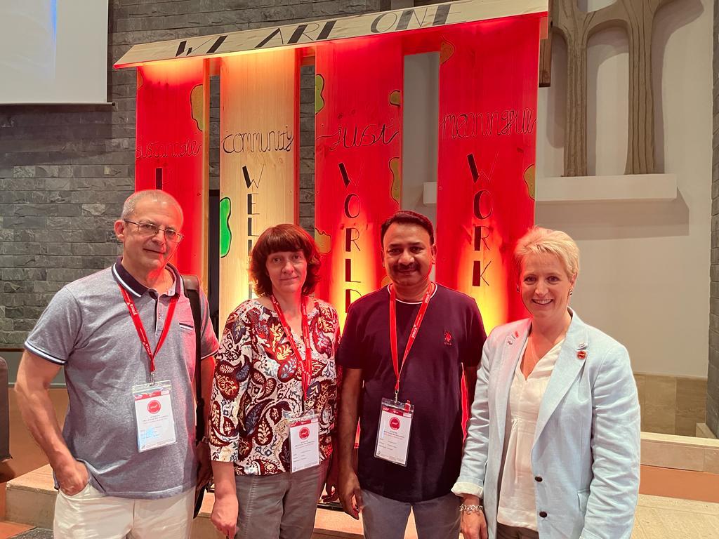 Our National President Dr. Vincent George at the 50th Anniversary of the YMCA Europe-Y2Gether Event at Berlin from 28th June to 1st July 2023. Discussing various aspects of partnership programmes. He had met Carlos-Secretary General WAY, President & General Secretary of the Ukraine YMCA, Emma and Juan- President & Secretary General of YMCA Europe.